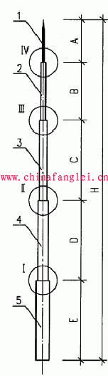 此種避雷針最高為12米,超過12米的避雷針需要采用GH系列環(huán)形鋼管桿避雷針或GJT系列避雷針?biāo)�。針尖采用凱威避雷針PTZ-1.0,全部材料為熱鍍鋅。